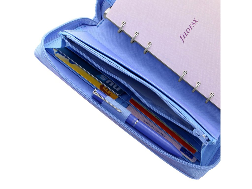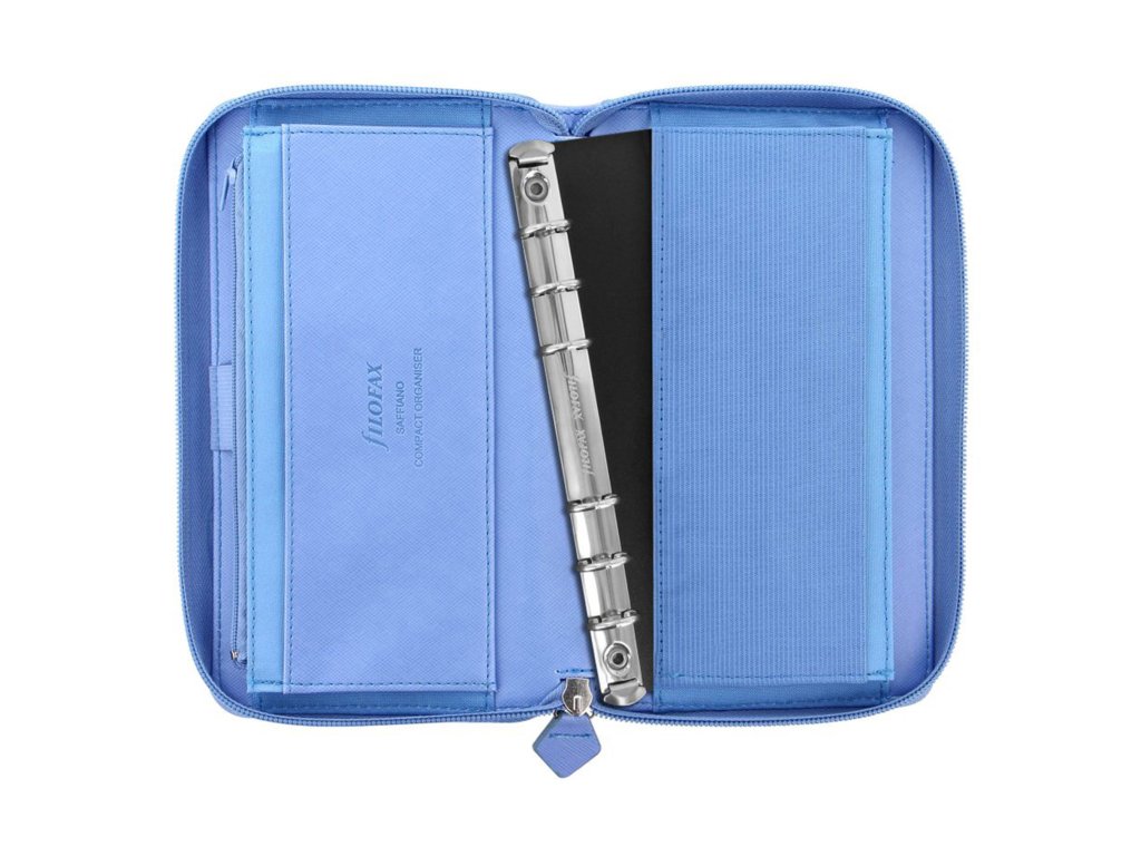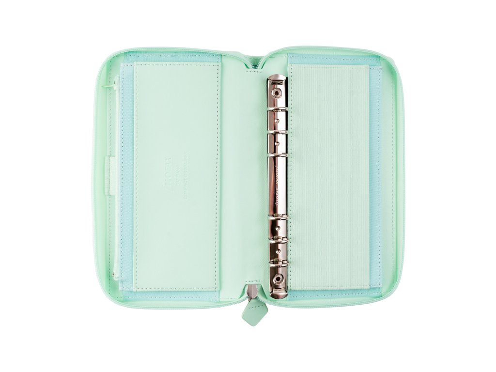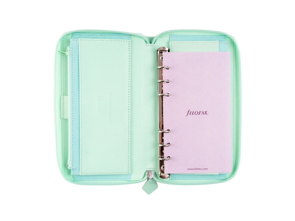 Vše potřebné na jednom místě – to je diář Saffiano Zip v provedení Osobní Compact. Spojují kompaktní diář s dámskou peněženkou. Zapínání na zip, kapsy pro bankovky a karty, zapínací kapsa na mince, a to celé je doplněné o vyjímatelnou kroužkovou vazbu. Takže kdykoliv jdete s kamarádkou ven, můžete nechat kalendář doma.HLAVNÍ PŘEDNOSTI