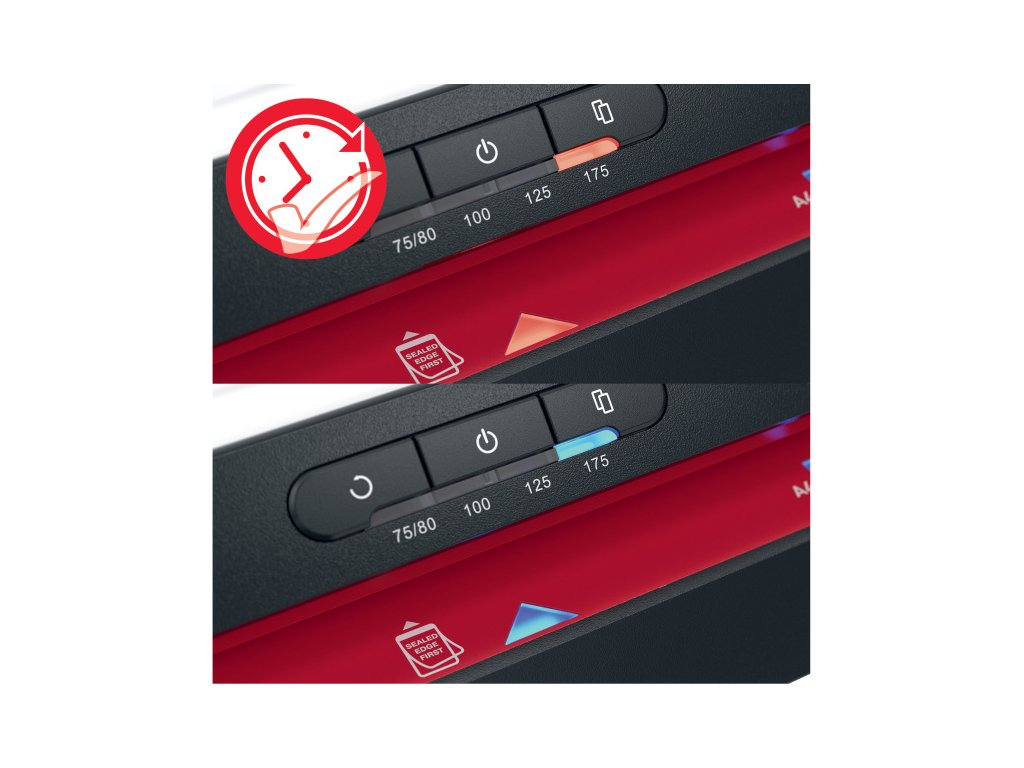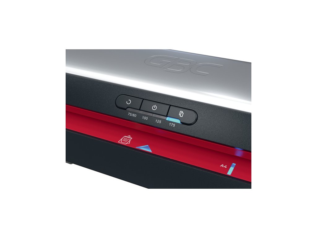 Laminátor GBC 480HS A3 představuje výkonné a spolehlivé řešení pro profesionální laminaci ve velkém objemu. Díky rychlému zahřátí za pouhou jednu minutu a laminaci listu A4 (75 mikronů) během 23 sekund výrazně zvyšuje produktivitu. Při použití speciálních laminovacích kapes GBC pro rychlou laminaci lze dobu laminace zkrátit až o 33 %. Intuitivní ovládací panel umožňuje snadné nastavení tloušťky laminovacích kapes mezi 75, 100 a 125 mikrony, a je vybaven praktickým tlačítkem zpětného chodu pro snadné odstranění zaseknutých kapes. Chytrý systém SMART LED poskytuje vizuální i zvukové signály – červená kontrolka značí zahřívání, modrá doprovázená zvukem indikuje připravenost k použití. Laminátor se navíc automaticky vypne po 15 minutách nečinnosti, čímž šetří energii. LED kontrolky u vstupu kapsy pomáhají zajistit rovné vložení, aby nedocházelo k jejímu zaseknutí. GBC 480HS A3 zaručuje vždy hladký, profesionální výsledek a je ideální volbou pro ochranu a archivaci důležitých dokumentů. Nabízí se v elegantní černé barvě s červenými detaily.Doplňkové parametry
