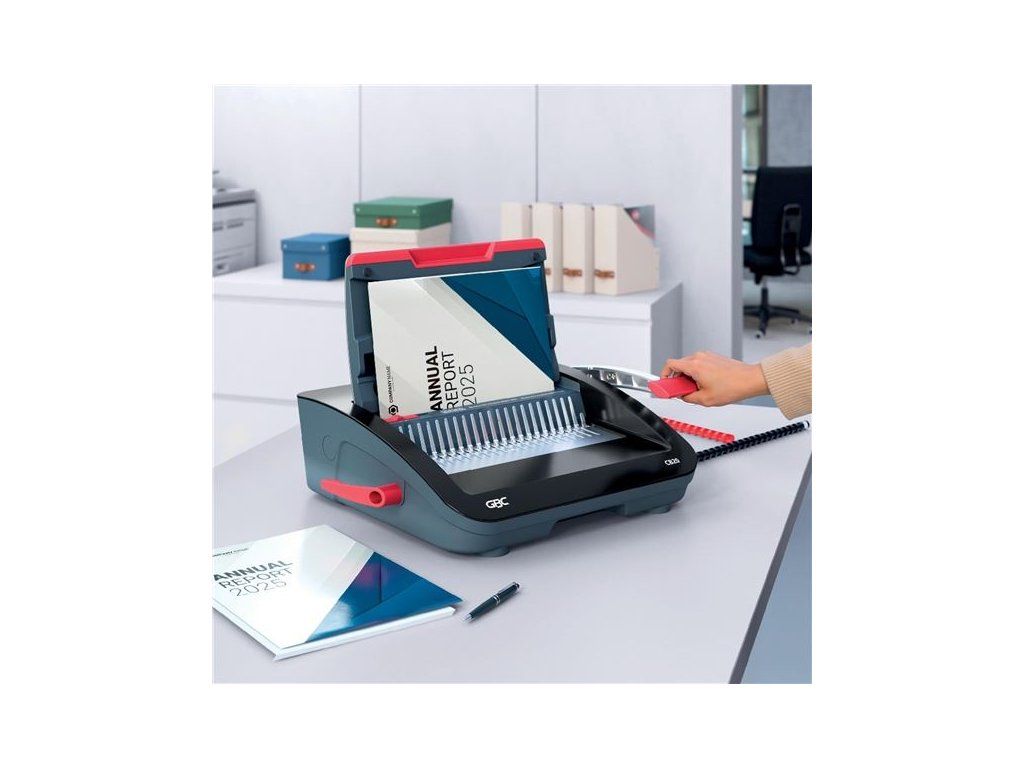 - Prosekne až 20 listů papíru o gramáži 80 g/m² a efektivně sváže až 240 listů najednou pomocí 28 mm hřbetů