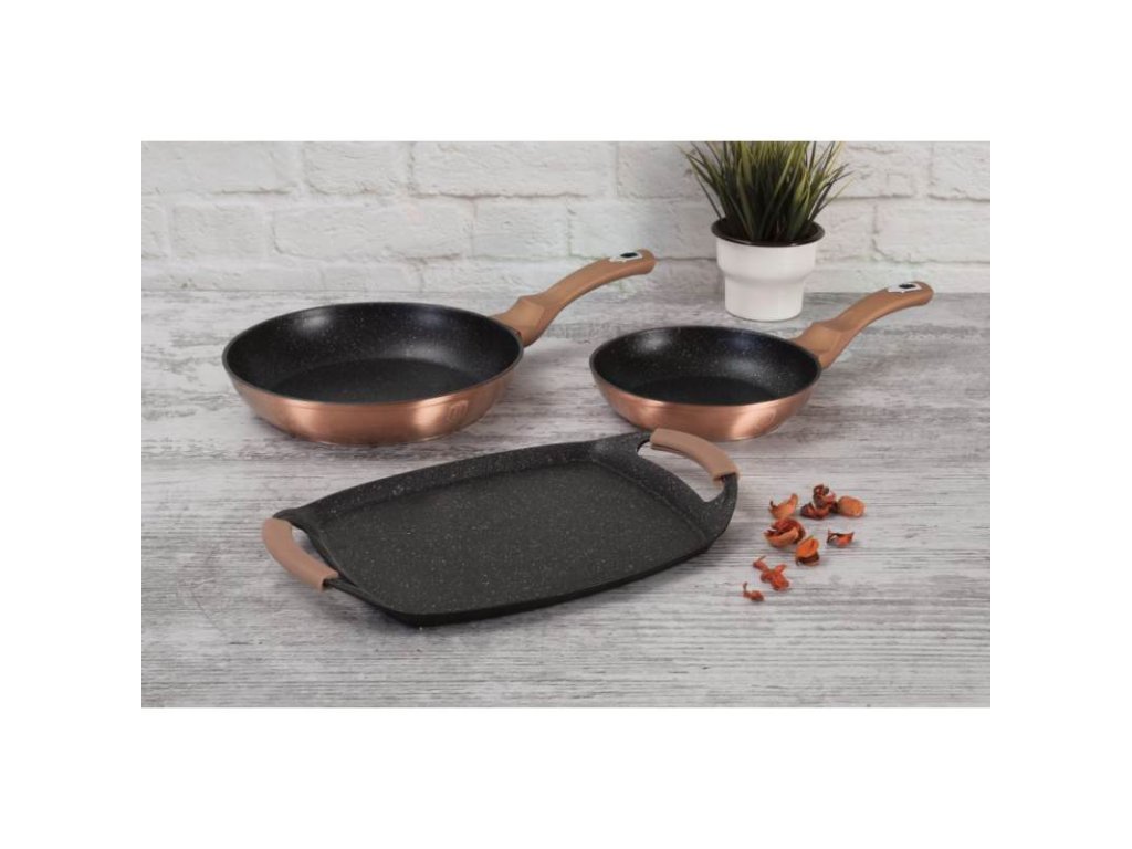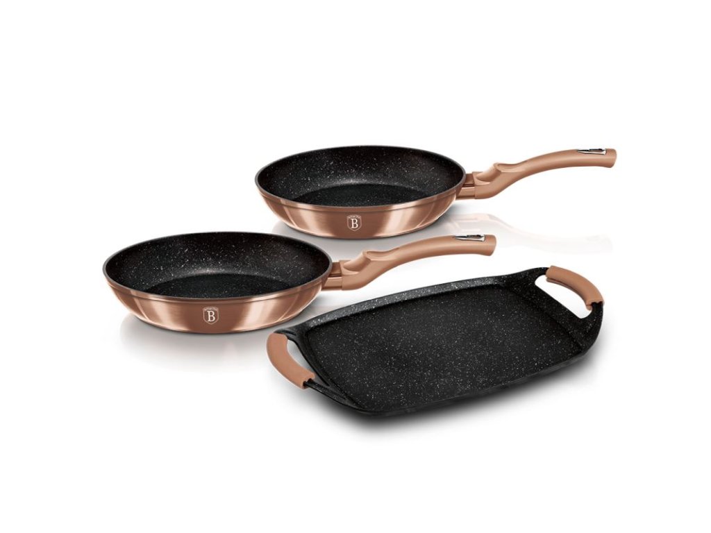 BERLINGERHAUS Sada pánví s mramorovým povrchem 3 ks Rosegold Metallic Line BH-1669