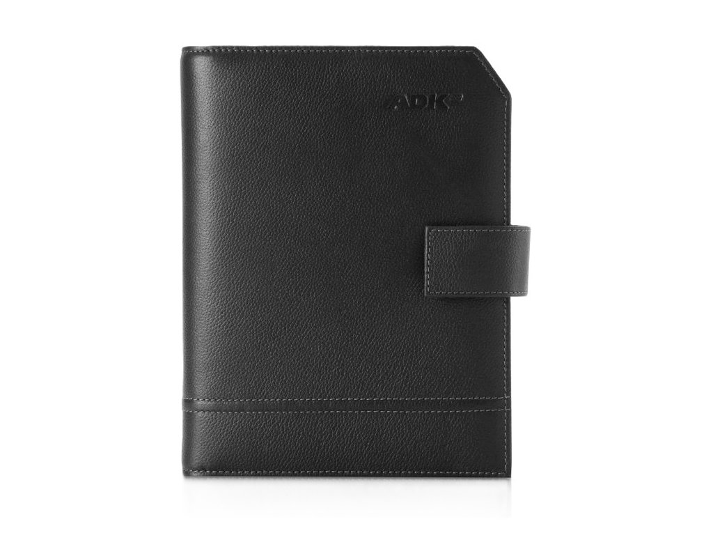 Manažerský diář formátu A5 ADK Classic v černé barvě. Desky jsou šité v České republice z měkké a na omak příjemné hověziny s mírně kontrastním štepováním. Ušito v ČR. Kroužková mechanika pro snadnou výměnu a doplnění náplní ve dvou variantách: Standardní 2,5 cm s denním plánováním a tenčí „slim“ 1,5 cm s týdenním plánováním. Bezpečné a rychlé zapínání díky magnetickému patentu. Rozměry desek: 23 x 17 x 3,5 cm, náplně: 21 x 13 cmDoplňkové parametry