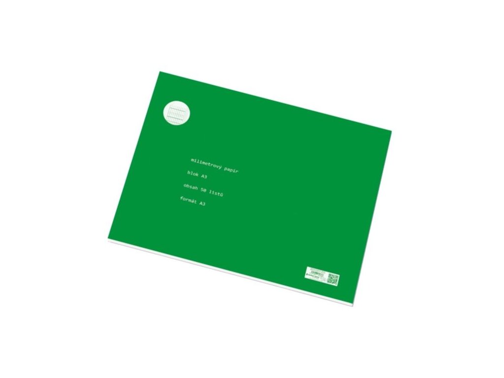Zeleně předtištěný milimetrový papír je rozdělený po 1, 5 a 10 milimetrechJe vyrobený z bezdřevého papíru s plošnou hmotností 80 g/m2Jedna strana potištěná zeleným milimetrovým rastrem, druhá strana čistáLepený blok s 50 listy milimetrového papíruZavěšená krycí obálkaBezdřevý papírFormát A3Doplňkové parametry