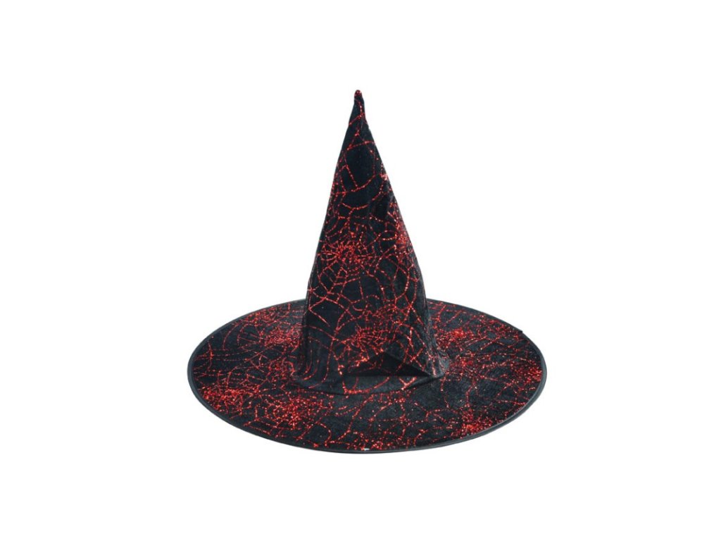 Čarodějnický klobouk jako stylový doplněk na párty, pálení čarodějnic nebo halloween, ideální pro děti i dospělé, barva černo-červená, šířka 44 cm, výška 35 cm.Doplňkové parametry