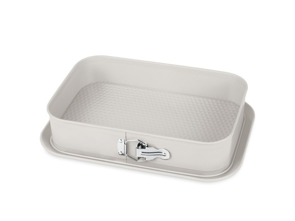 Tato rozkládací forma na pečení je vyrobena z uhlíkové oceli s nepřilnavou vrstvou TitanPro, která zajišťuje vysokou kvalitu a odolnost. Nepřilnavý povrch je vhodný pro pečení s minimem tuku. Forma má oddělitelný dno, což usnadňuje vyjmutí pečeného pokrmu. Velikost formy je 39x27x7,5 cm a její matná krémová barva dodává elegantní vzhled, který se hodí do každé kuchyně.