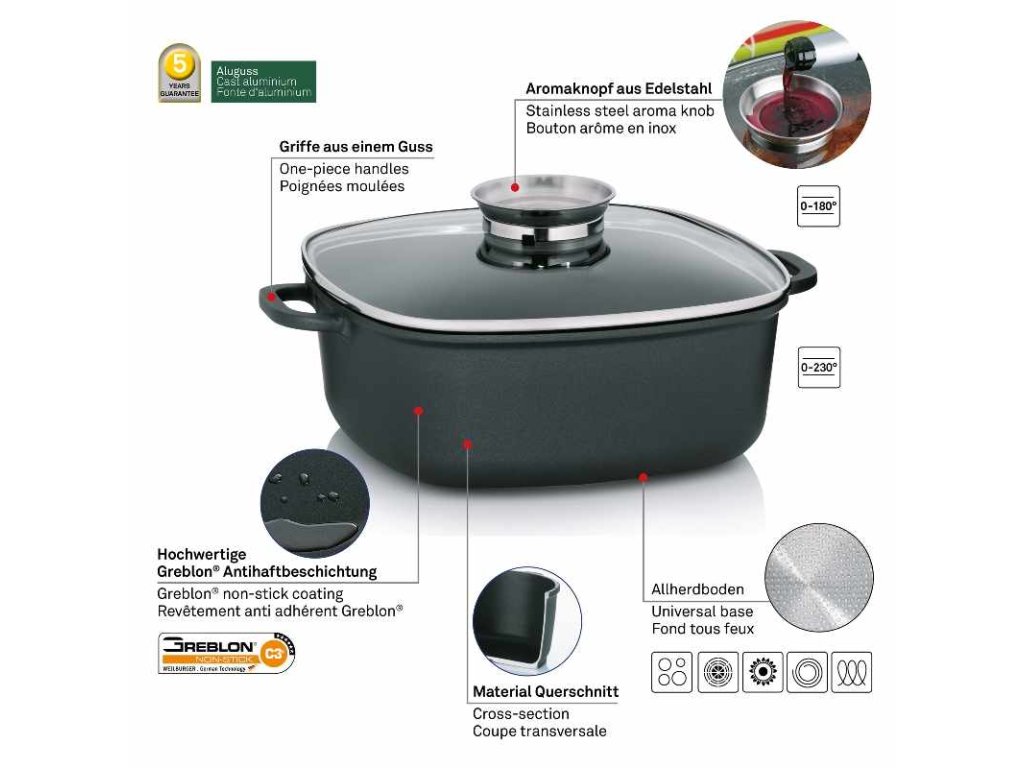 Pekáč čtvercový s aroma poklicí 28 cm KERROS se skvěle hodní na pečení pokrmů