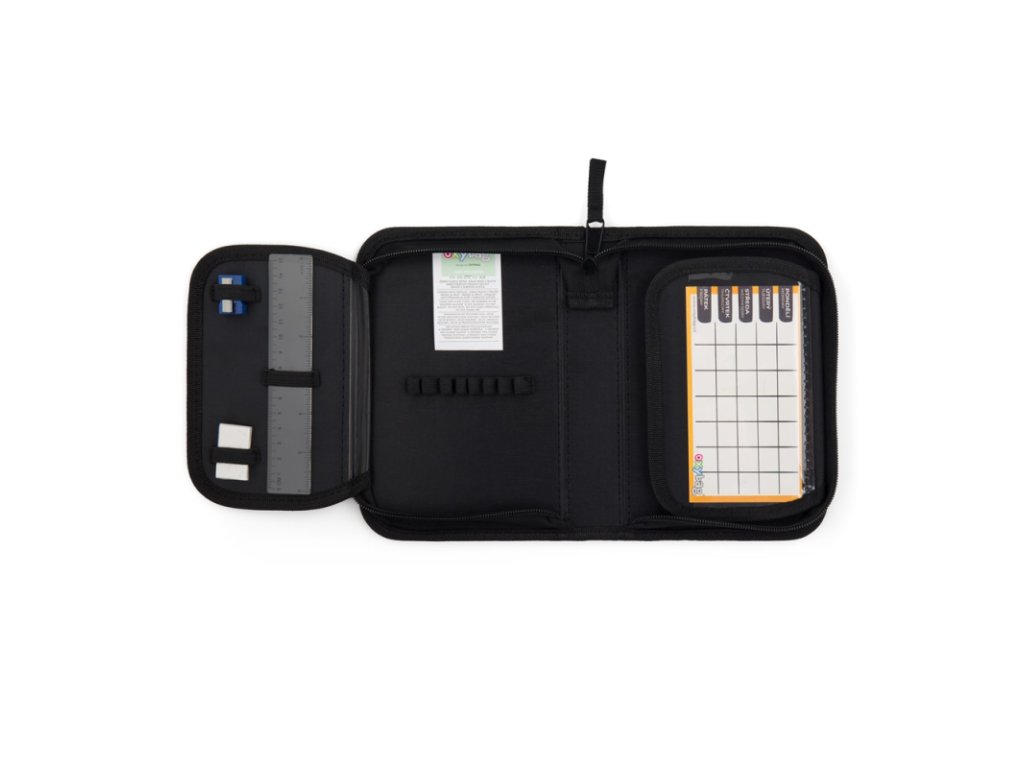 Jednopatrový školní penál s 2 chlopněmi řady UNICOLOR, prázdný, obsahuje 25 gumových poutek pro uchycení psacích potřeb. Na vnitřních chlopních jsou průhledné fólie pro rozvrh hodin.Doplňkové parametry