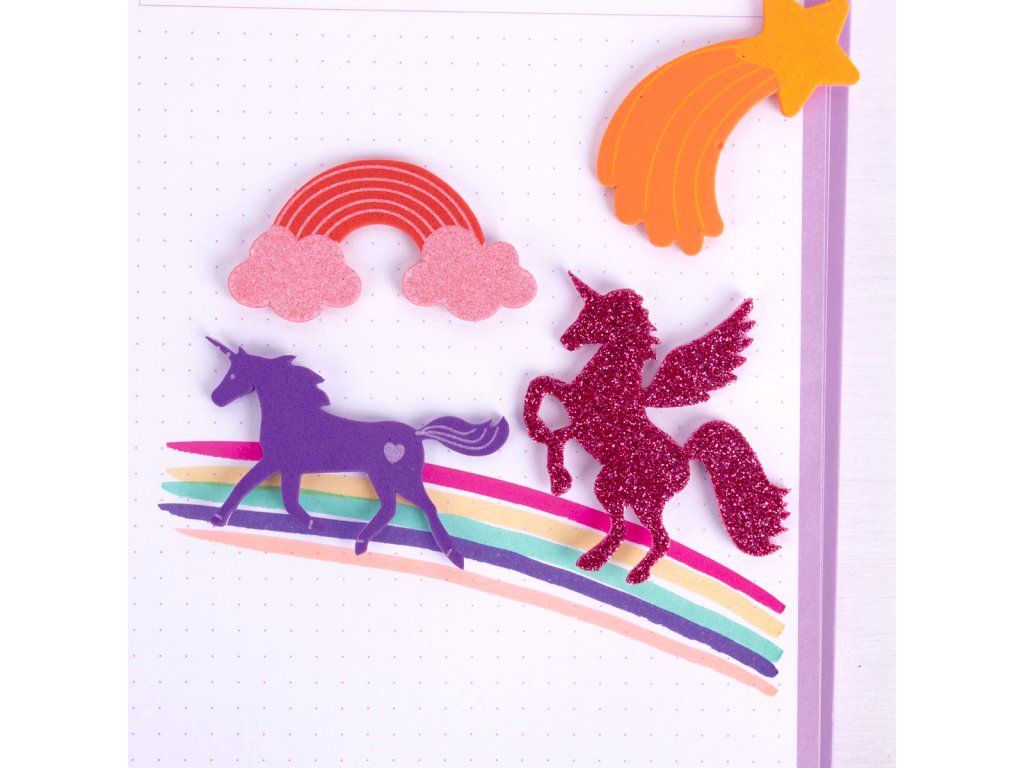Samolepicí jednorožci různých druhů, barev a velikostí pro dětské tvoření.Doplňkové parametry