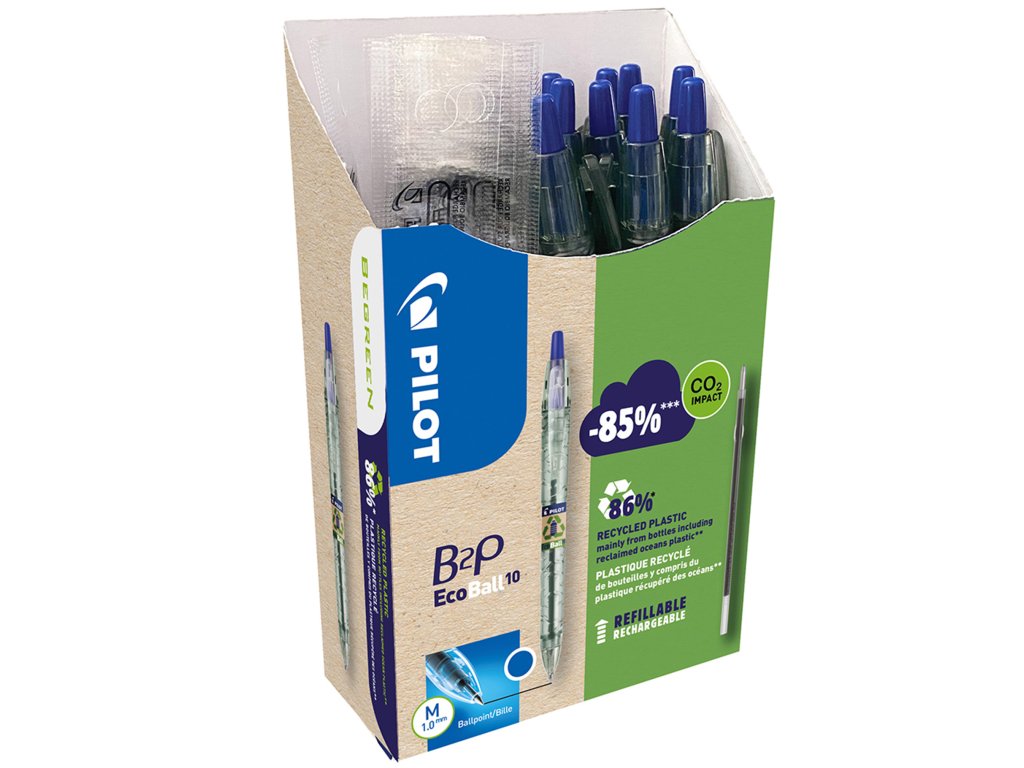Pilot, Sada 10 ks Kuličkové pero a 10 ks náplň B2P Ecoball Begreen, 1.0, modrá, blistr