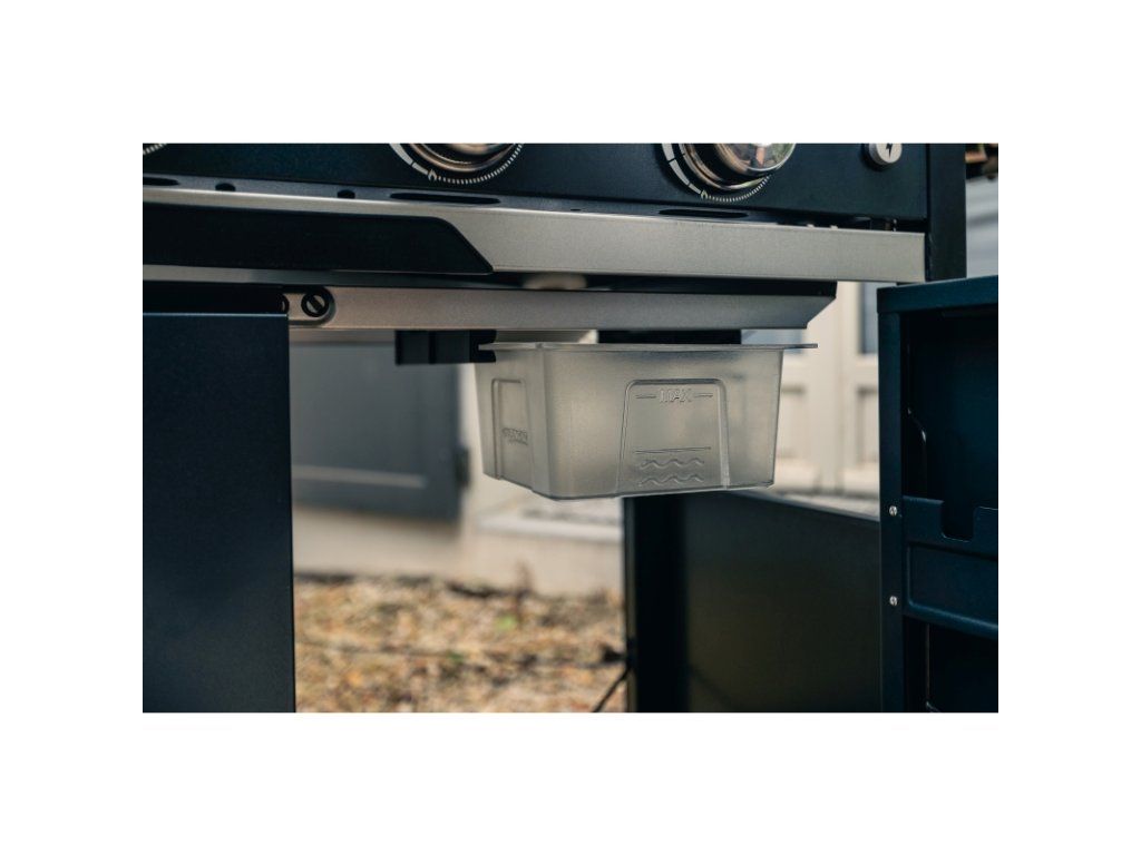 Integrovaná zásuvka na nečistoty – pro snadnou údržbu a čistotu grilu.