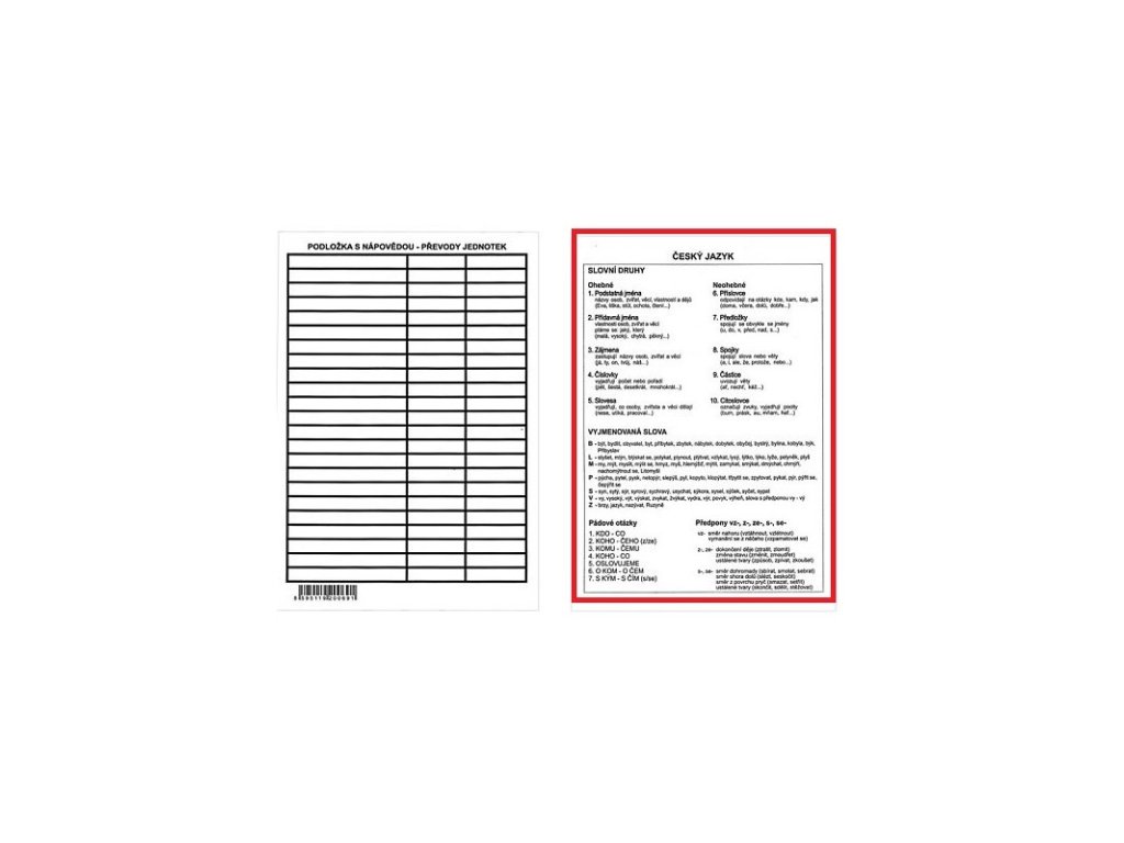oboustranné periodické soustavy prvků, lamino podložky s nápovědou (z jedné strany podložka do sešitu, z druhé nápověda) a šablona ČR (barevný mix)Doplňkové parametry
