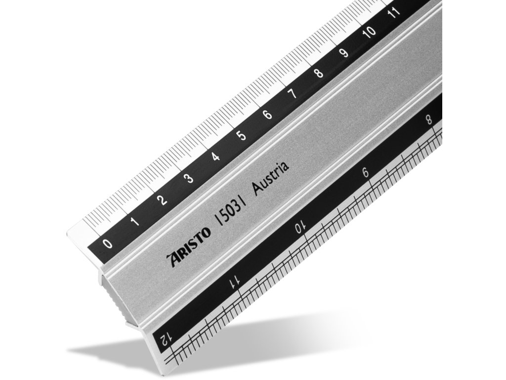 Hliníkové řezací pravítko• 2 stupnice - mm a palce v černé barvě