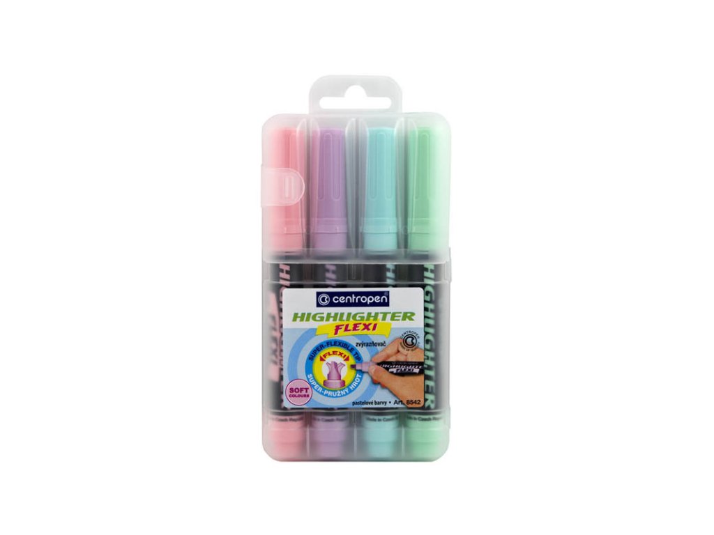 Zvýrazňovač Centropen Flexi Soft pastel 8542 / sada 4 ks