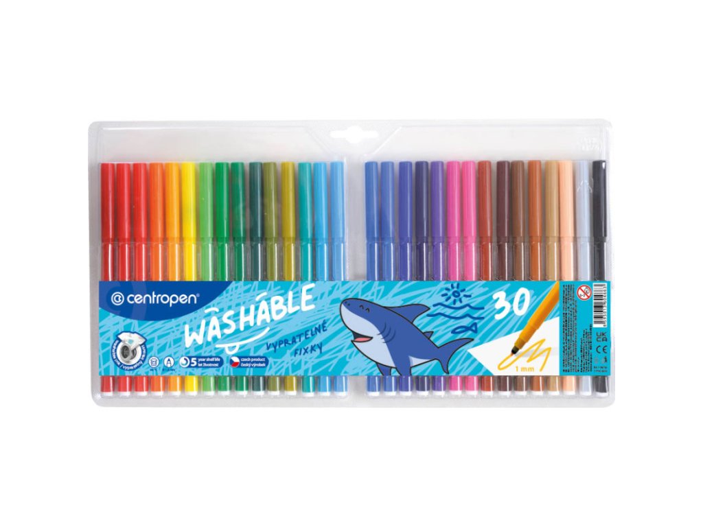 barevné popisovače, zdravotně nezávadný inkoust, odolávají vyschnutí až 5 let, vypratelné, ventilační chránítko, válcový hrot odolný proti zatlačení, šířka stopy 1 mmDoplňkové parametry