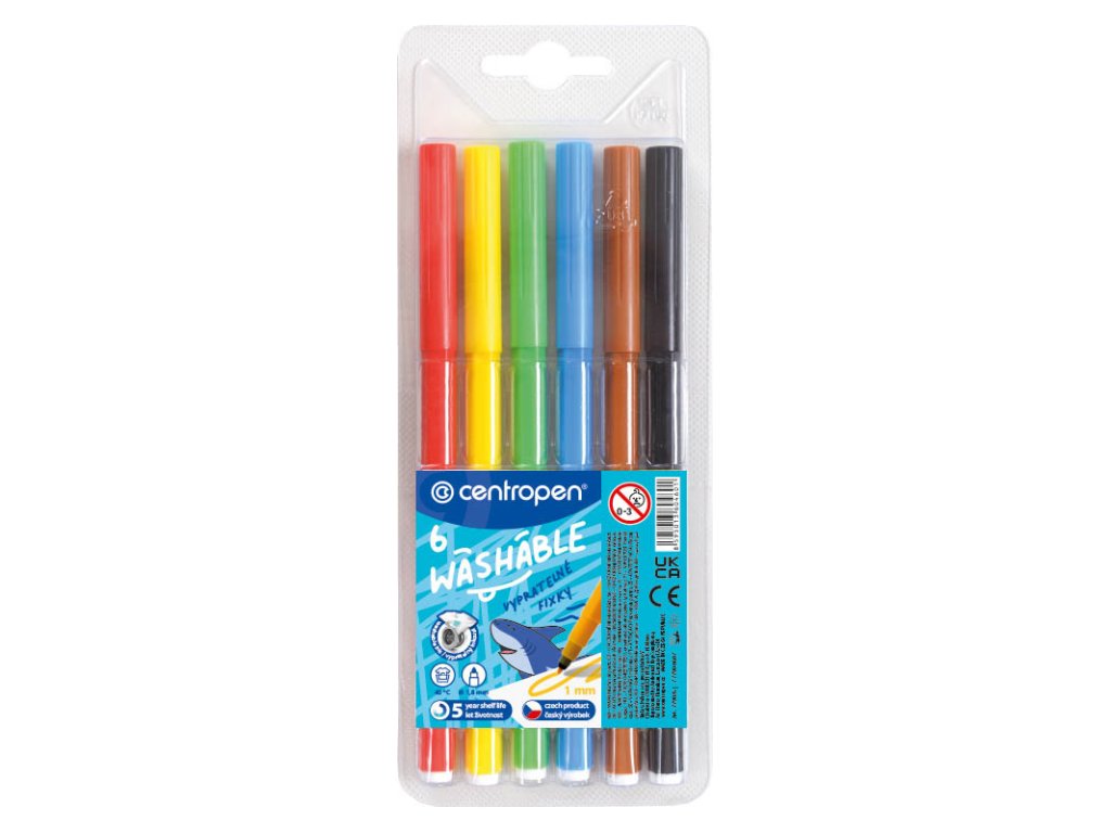 barevné popisovače, zdravotně nezávadný inkoust, odolávají vyschnutí až 5 let, vypratelné, ventilační chránítko, válcový hrot odolný proti zatlačení, šířka stopy 1 mmDoplňkové parametry