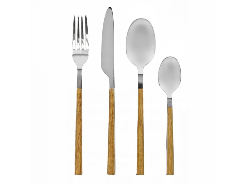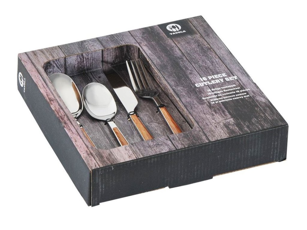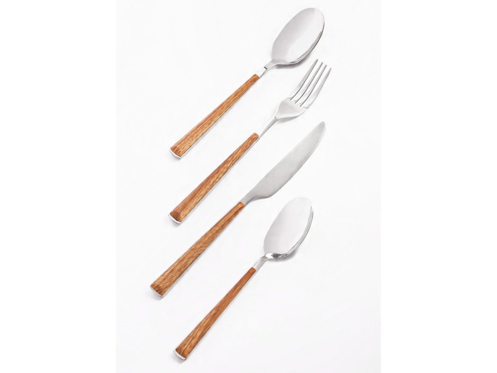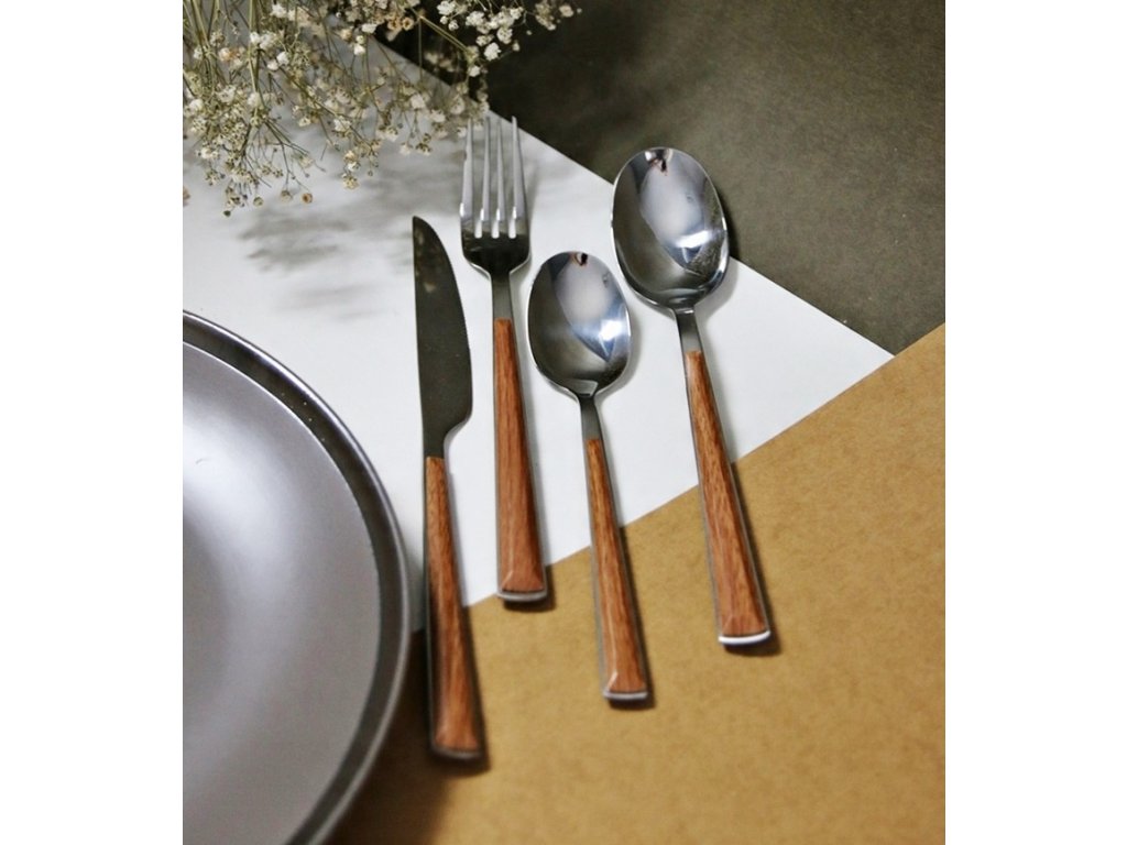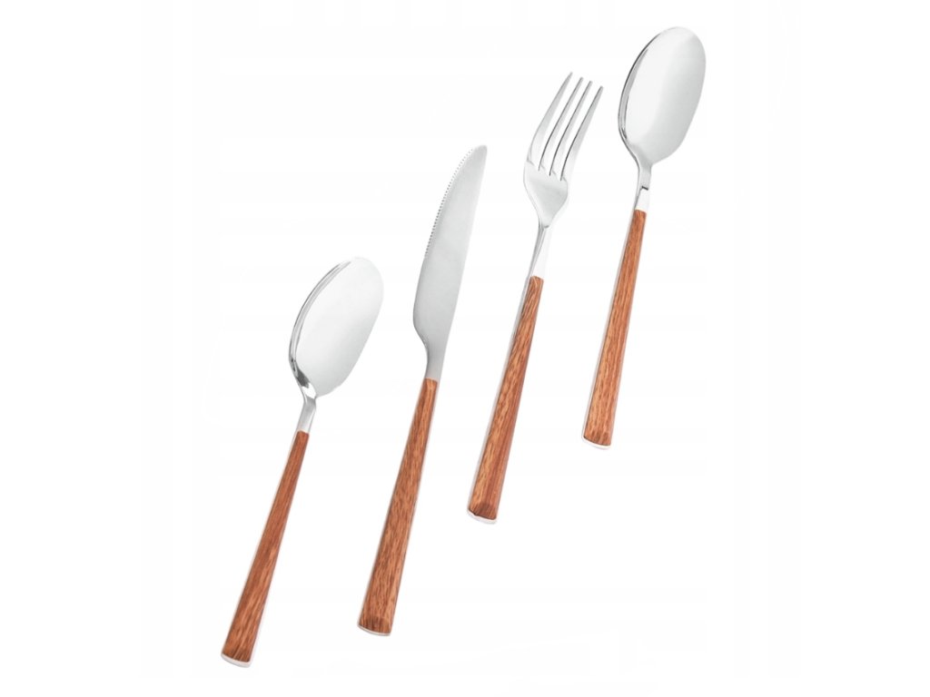 Sada je vhodná do myčky na nádobí. Tento příborový set je nejen krásný, ale také praktický. Můžete jej používat každý den nebo na speciální příležitosti. Vaši hosté budou ohromeni jeho kvalitou a stylovým vzhledem. Je vyroben z nerezové oceli a má 16 kusů. Jeho nerezový design dodá vašemu stolu atmosféru a eleganci.Materiál: Nerezová ocel 18/0Počet kusů: 14Design: stříbrný / dřevoObsah balení:4 x vidlička4 x lžíce4 x nůž4 x čajová lžičkaDoplňkové parametry