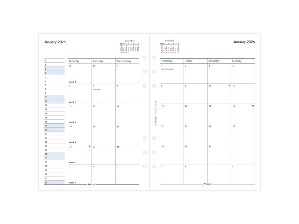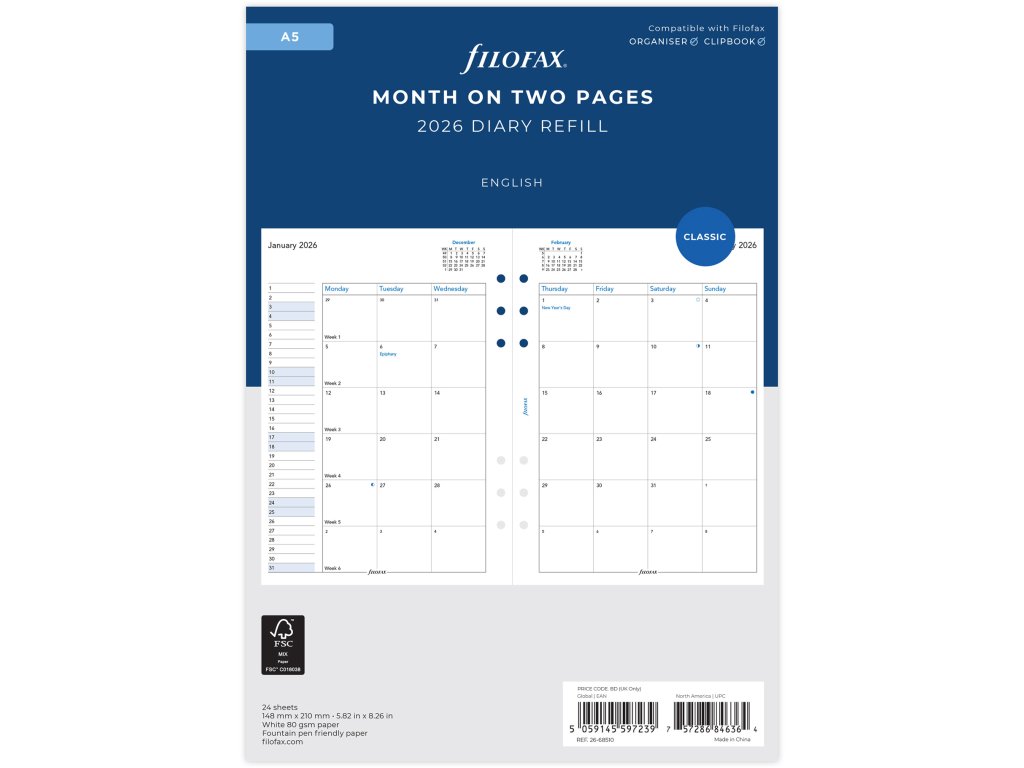 Filofax, Kalendář 2026 A5, měsíc/2 strany, AJ