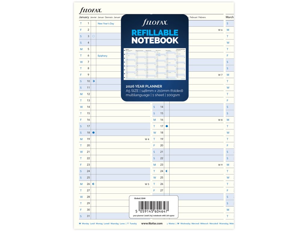 Filofax, Kalendář pro notebook 2026 A5, roční plán