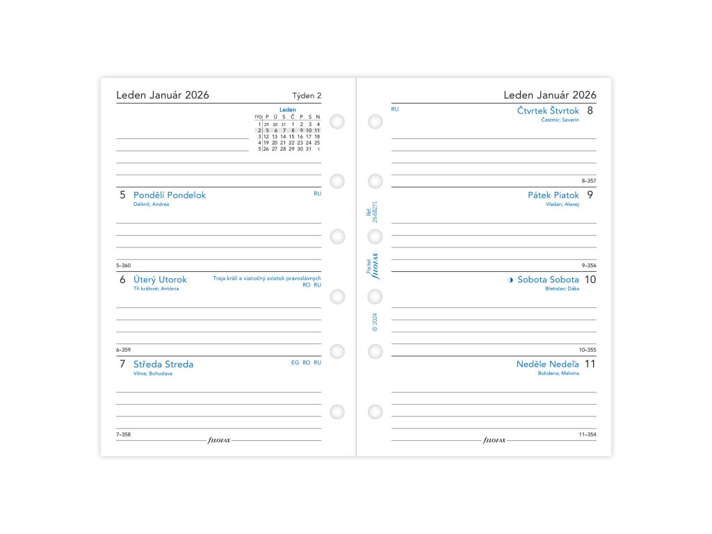 kalendář 2026 kapesní, týden/2 str, linky, ČJ+SJ