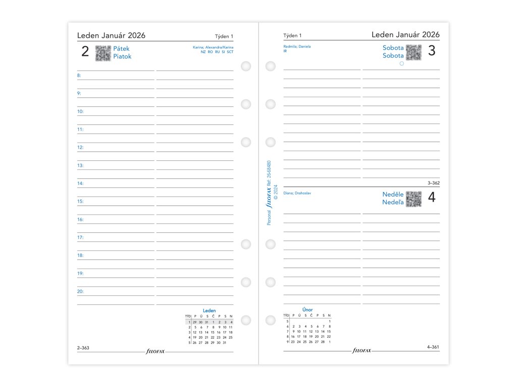 kalendář 2026 osobní, den/1 str, linky, ČJ+SJ
