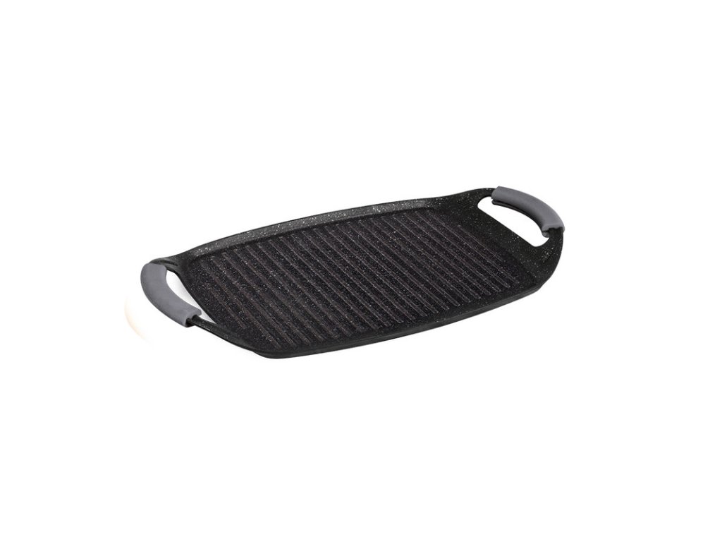 - grilovací deska je ideální k přípravě zeleniny, masa, uzenin, steaků, burgerů nebo ryb, následně lze jakékoliv suroviny zapékat v troubě a připravit tak celý oběd nebo večeři na jednom kusu nádobí- třívrstvý nepřilnavý povrch s mramorovým designem je vhodný pro zdravé vaření s minimem tuku, v závislosti na použitých surovinách klidně i úplně bez tuku