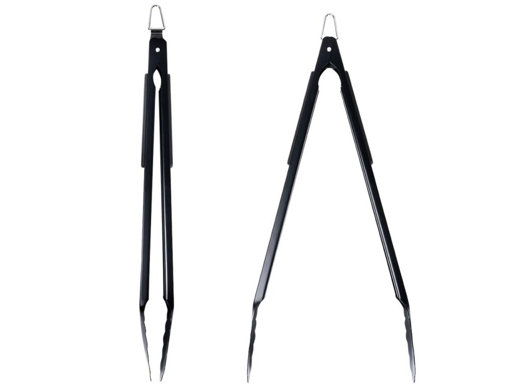 grilovací kleště, celková délka 51xš2,3cm, nejširší část kleští 5cm, tloušťka 1mm, černý nepřilnavý (ptfe) kovový povlak (nerezová ocel ss430) s rukojetí 12,8cmDoplňkové parametry