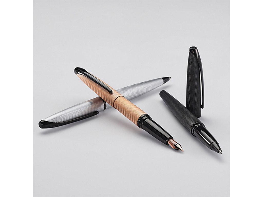 Každý může být úspěšný. Poznávacím znamením této kolekce je aerodynamický tvar od integrovaného klipu až k zúžené špičce pera. ATX nabízí jedinečný moderní styl v elegantním a ergonomickém balení. Pera jsou navržena v souladu s nejnovějšími trendy v ergonomii, díky tomu perfektně padnou do ruky. Jemná rovnováha mezi designovou důmyslností a smyslem pro praktičnost těchto per je často napodobována, nikdy však duplikována. Doživotní mechanická záruka Otočný mechanismus vysunutí hrotu náplně Leštěný chromový povrch Lesklé chromové doplňky Balení obsahuje černou a modrou náplň s hrotem Medium (8513 a 8511) Šířka: 12. 2 mm Délka: 139 mm Hmotnost: 26 gramůDoplňkové parametry