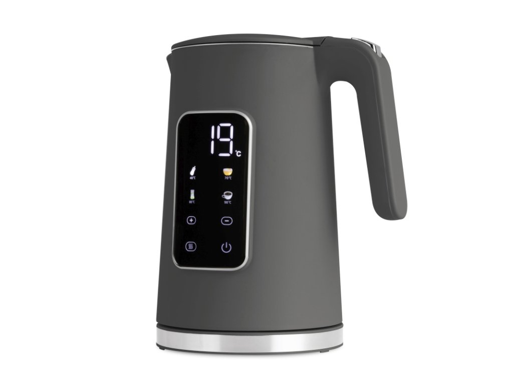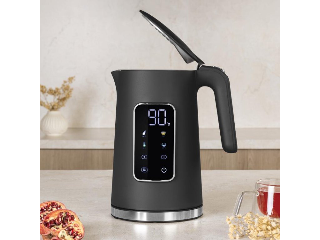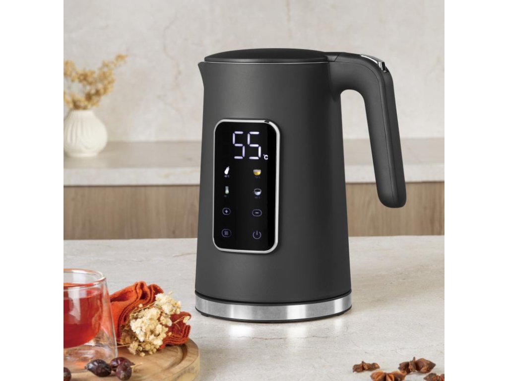 Tato moderní digitální rychlovarná konvice v elegantním matném antracitovém provedení je ideální volbou pro všechny, kdo si chtějí snadno a rychle připravit horký nápoj přesně podle své chuti. Díky chytrým funkcím, přehlednému displeji a uživatelsky přívětivému ovládání nabízí pohodlí při každodenním používání.