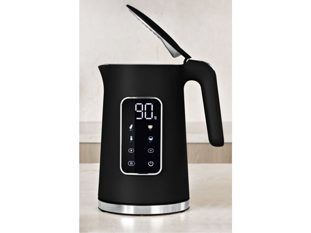 Tato moderní digitální rychlovarná konvice v elegantním černo-stříbrném provedení je ideální volbou pro všechny, kdo si chtějí snadno a rychle připravit horký nápoj přesně podle své chuti. Díky chytrým funkcím, přehlednému displeji a uživatelsky přívětivému ovládání nabízí pohodlí při každodenním používání.