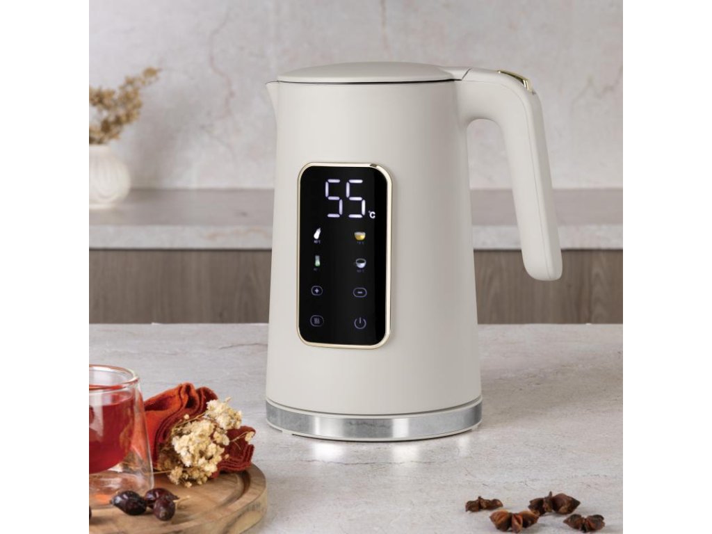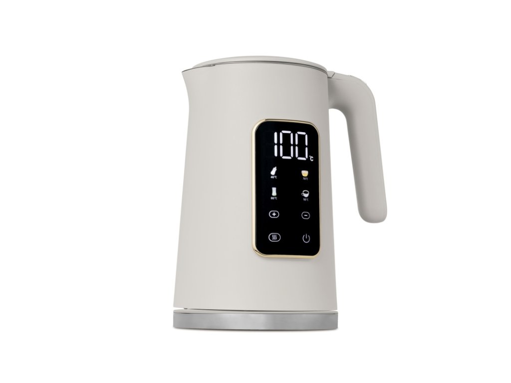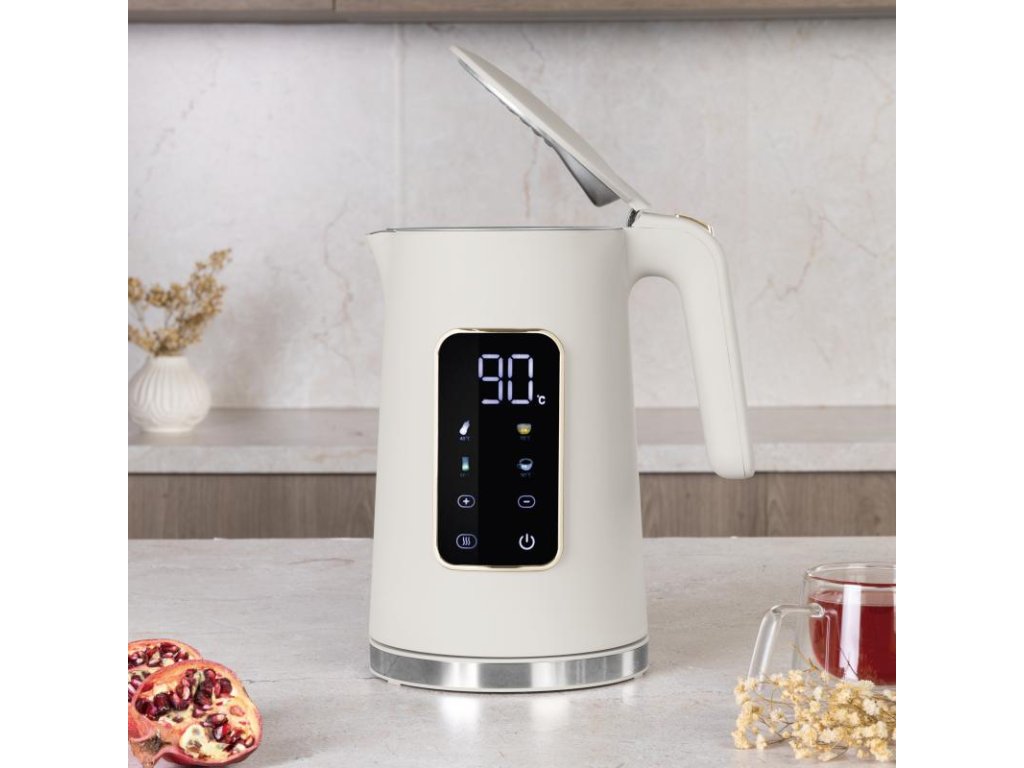 Tato moderní digitální rychlovarná konvice v elegantním matném krémovém provedení je ideální volbou pro všechny, kdo si chtějí snadno a rychle připravit horký nápoj přesně podle své chuti. Díky chytrým funkcím, přehlednému displeji a uživatelsky přívětivému ovládání nabízí pohodlí při každodenním používání.