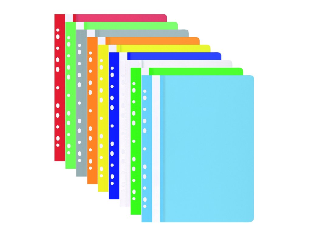 Klasický rychlovazač se zesileným obalem k třídění a evidenci dokumentů. Euroděrování umožňuje uložení do pořadače. Transparentní přední strana a barevná zadní. Oboustranný popisovatelný štítek po celé délce na přední straně.- pro formát A4