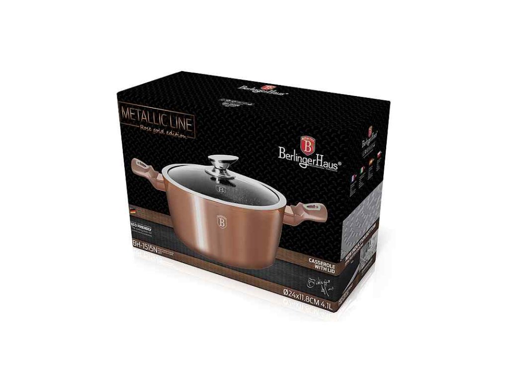 BERLINGERHAUS Kastrol s mramorovým povrchem a poklicí 24 cm Rosegold Metallic Line