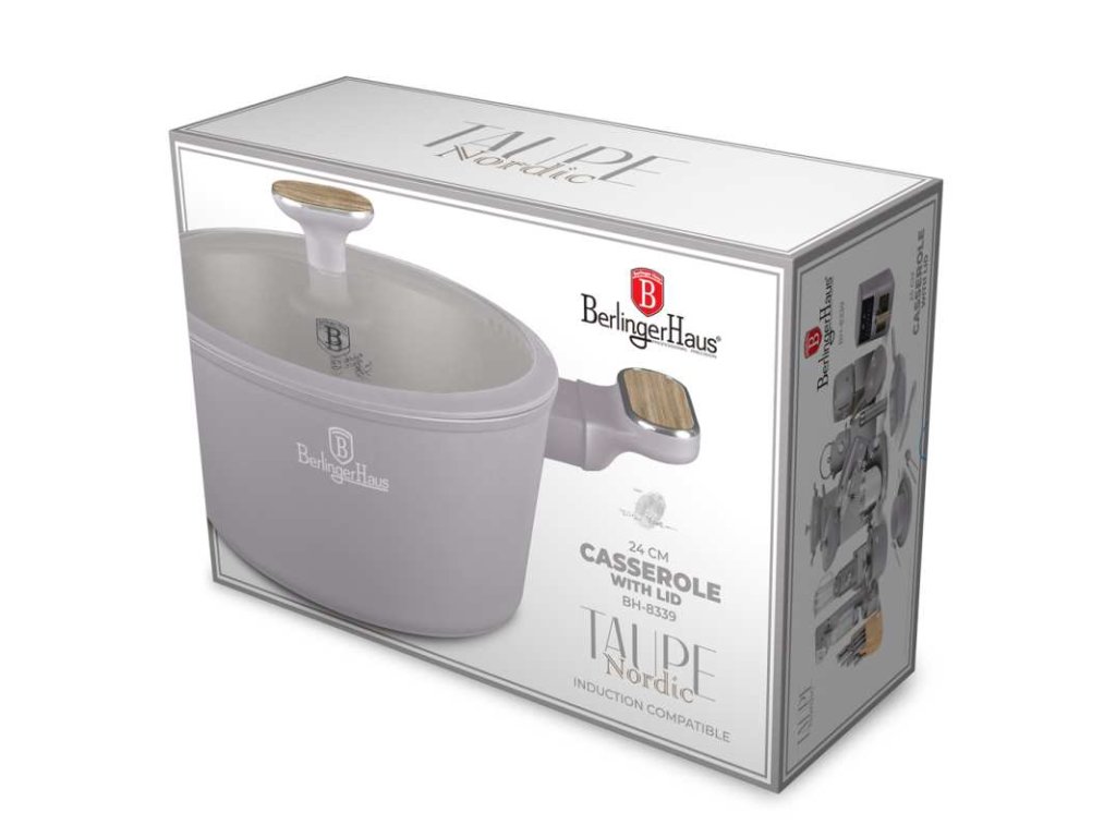 BERLINGERHAUS Kastrol s titanovým povrchem a poklicí 24 cm Taupe Nordic Collection BH-8339