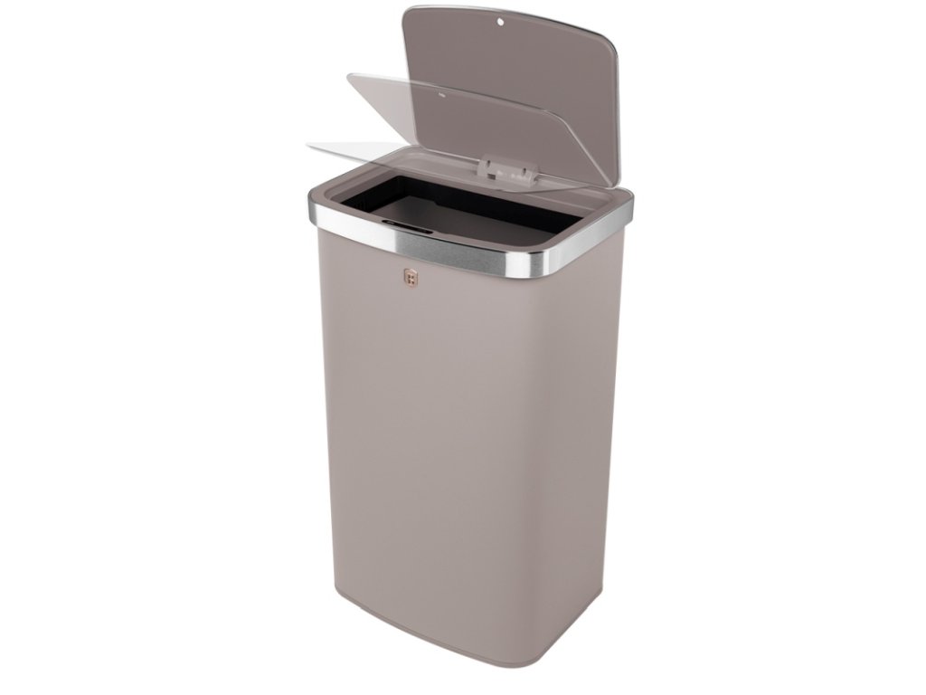 Technické parametry:• Materiál: ocel• Rozměry: 65*38,5*28,5 cm, 60 l• Napájení: 4 ks AA baterií (nejsou součástí balení)• Barva: matná taupeVlastnosti:• Víko lze otevřít tlačítkem nebo senzorem• Rám s víkem• Pojistný rámeček z nerezové oceli• Matný krémový povrch zvenku i zevnitřDoplňkové parametry