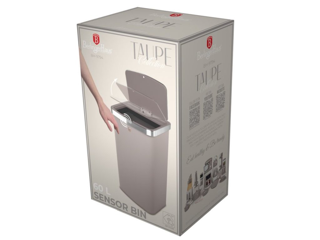BERLINGERHAUS Koš odpadkový se senzorovým otvíráním 60 l Taupe Collection BH-9794