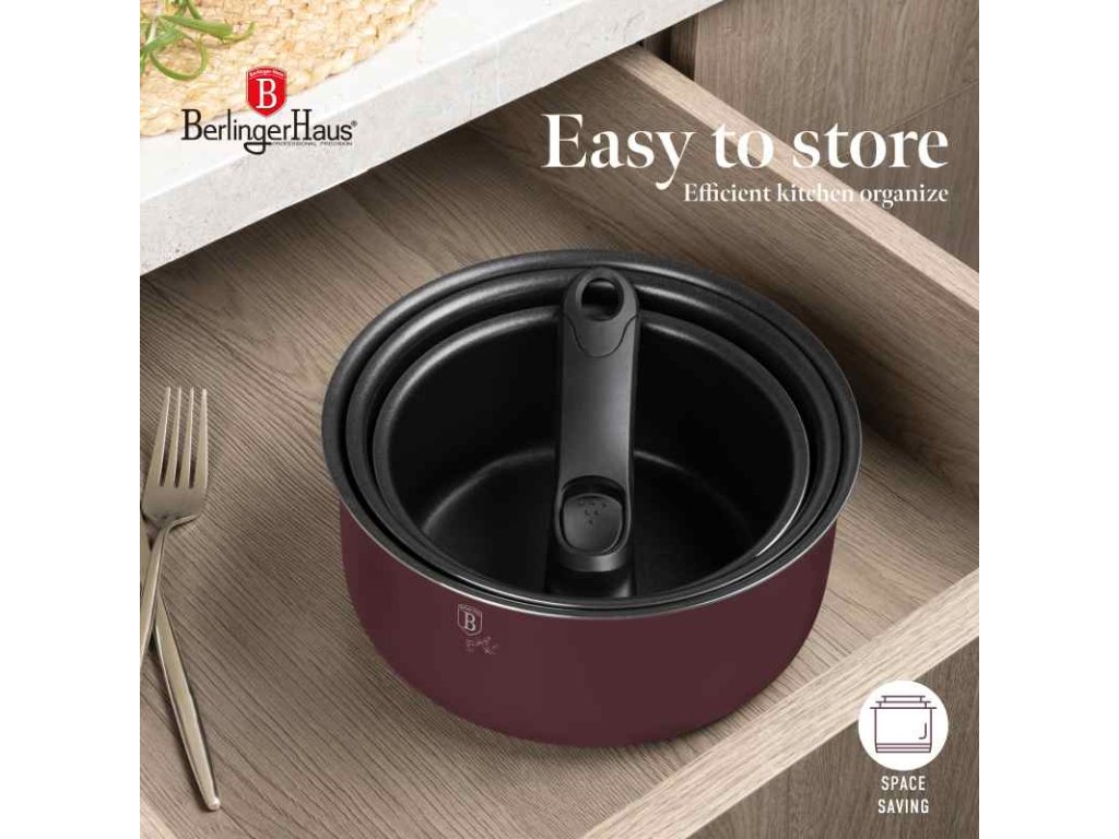 Chcete ušetřit místo v kuchyni, ale zároveň mít všestrannou sadu nádobí? Leonardo Collection – Matt Bordeaux je dokonalou kombinací funkčnosti a stylu. Díky odnímatelné CLICK rukojeti lze nádobí snadno používat na sporáku i v troubě, skladovat jej stohováním a pohodlně mýt.