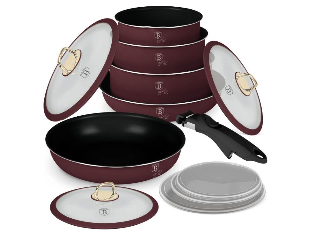 Sada nádobí s odnímatelnou rukojetí 12 ks Burgundy Metallic Line dodá vašemu vaření nový rozměr