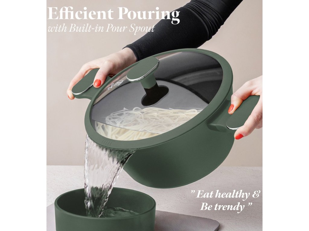 Hledáte kvalitní nádobí, které vám usnadní vaření a zároveň skvěle zapadne do moderní kuchyně? Matte Green Collection spojuje prvotřídní materiály s inovativními technologiemi pro maximální výkon. Titanový povrch TitanPro zajistí dlouhou životnost, rovnoměrné rozložení tepla a zdravé vaření s minimem tuku.