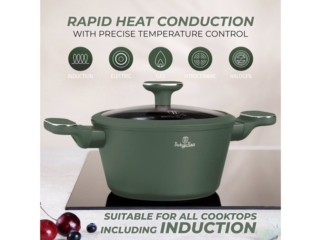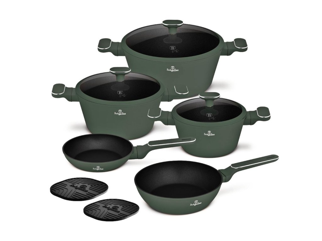 BERLINGERHAUS Sada nádobí s titanovým povrchem 10 ks Matte green Collection BH-8207