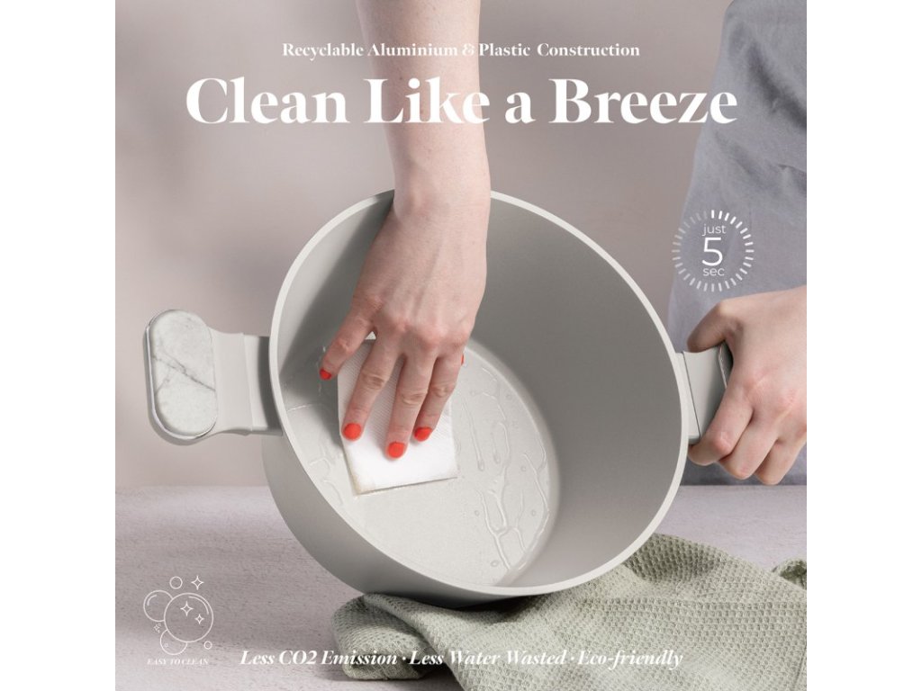 Sahara Marble Collection přináší kombinaci matného krémového povrchu a elegantního mramorového efektu. Tato sada je nejen estetickým skvostem, ale také výkonným nástrojem pro každodenní vaření.