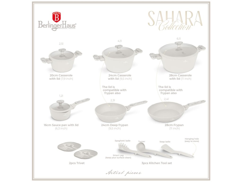 Sada nádobí 15 ks BERLINGERHAUS BH-8401 Sahara Marble Collection – Kámen, elegance a síla v jedné sadě.