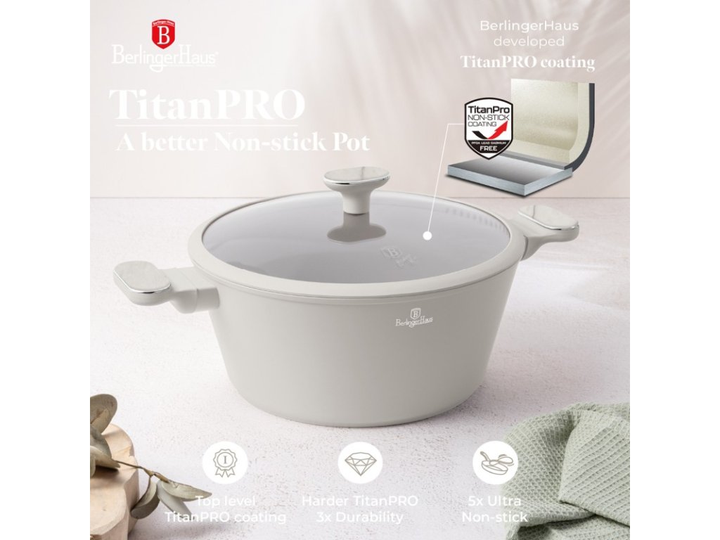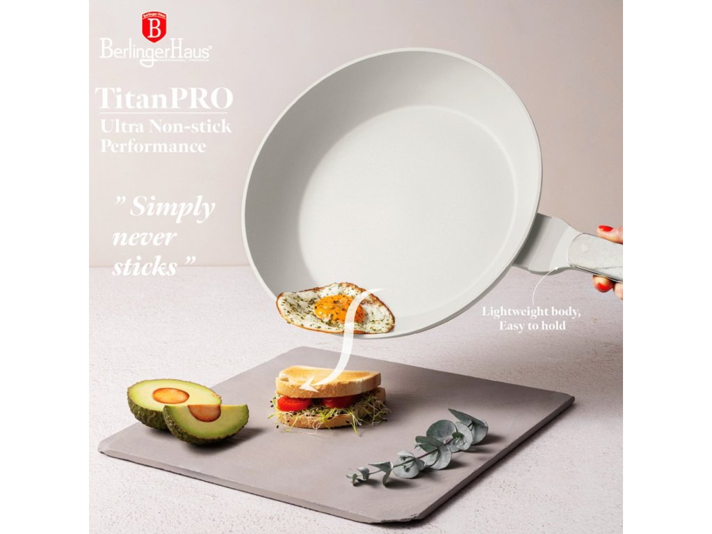 Třívrstvý nepřilnavý povrch TitanPro je odolný, bezpečný a ideální pro každodenní vaření bez připalování a zbytečného tuku. A čištění? Hračka.