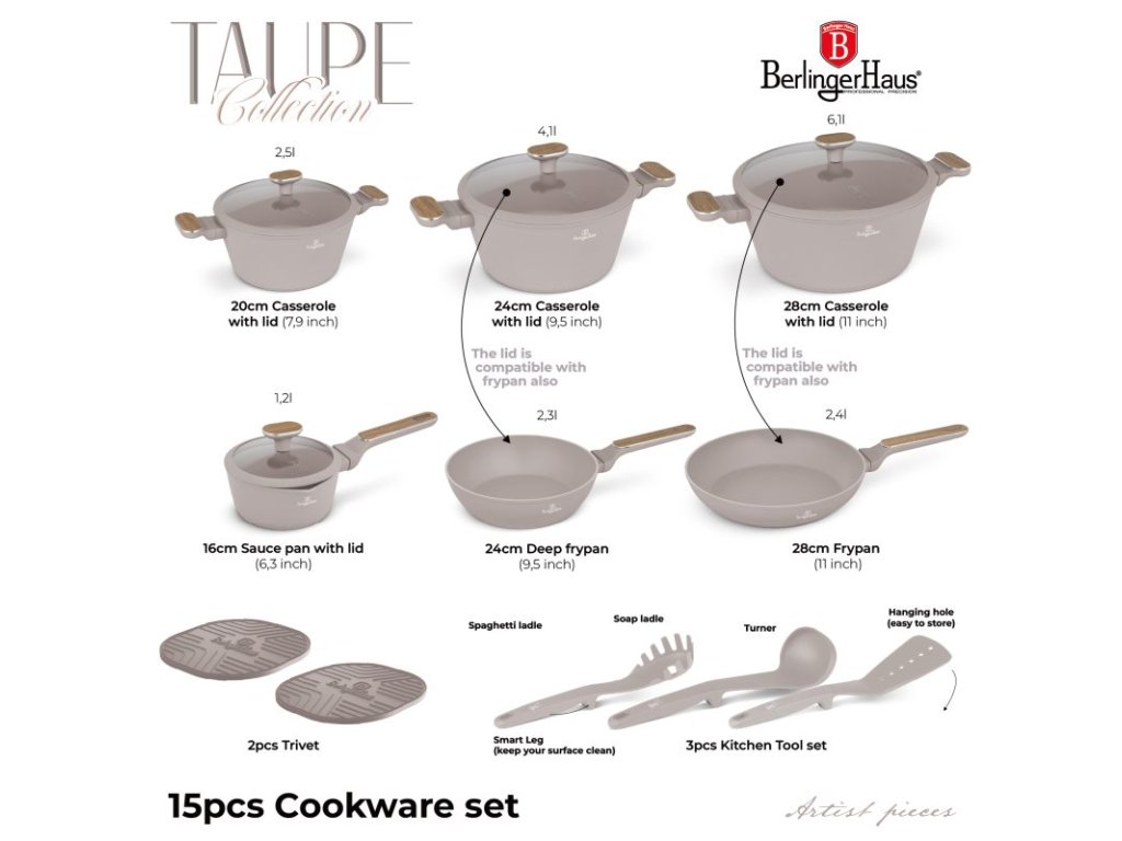 BERLINGERHAUS Sada nádobí s titanovým povrchem 15 ks Taupe Nordic Collection BH-8344