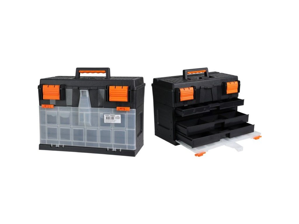 Tento praktický a odolný box je ideální pro domácí kutily i profesionály, kteří potřebují mít své nářadí přehledně uspořádané a snadno přenosné.