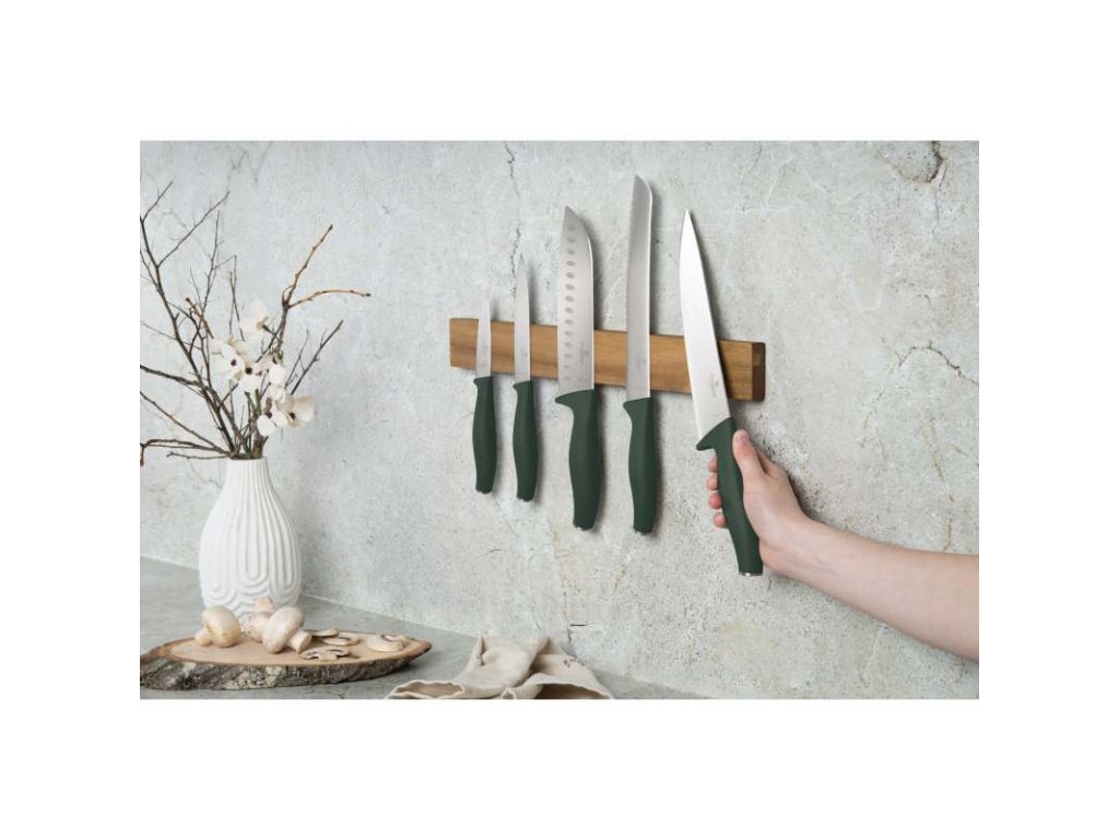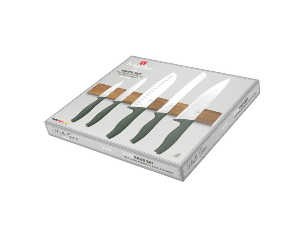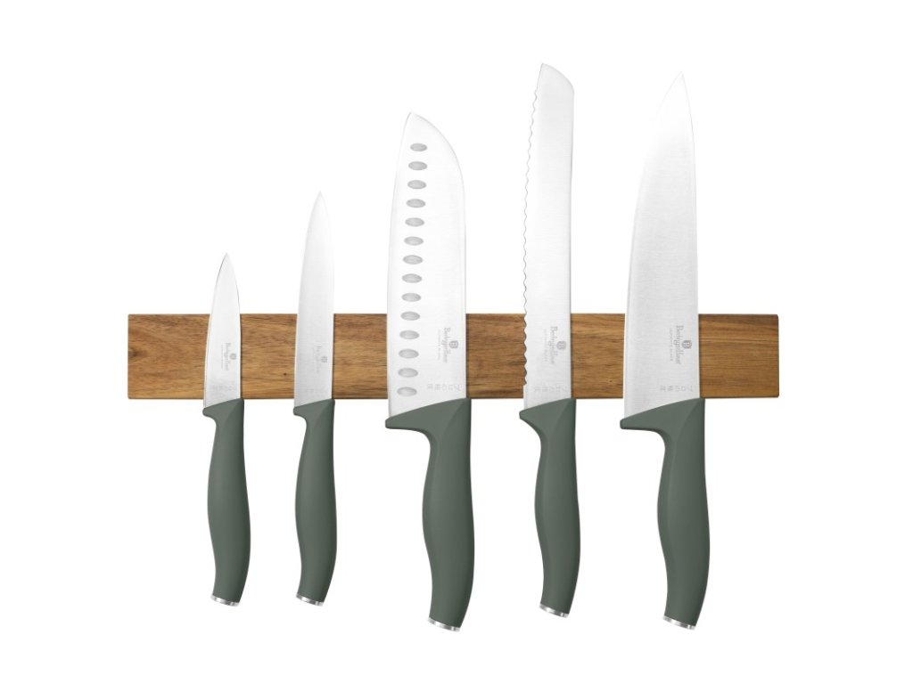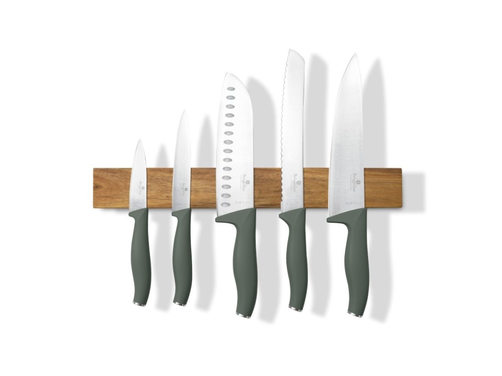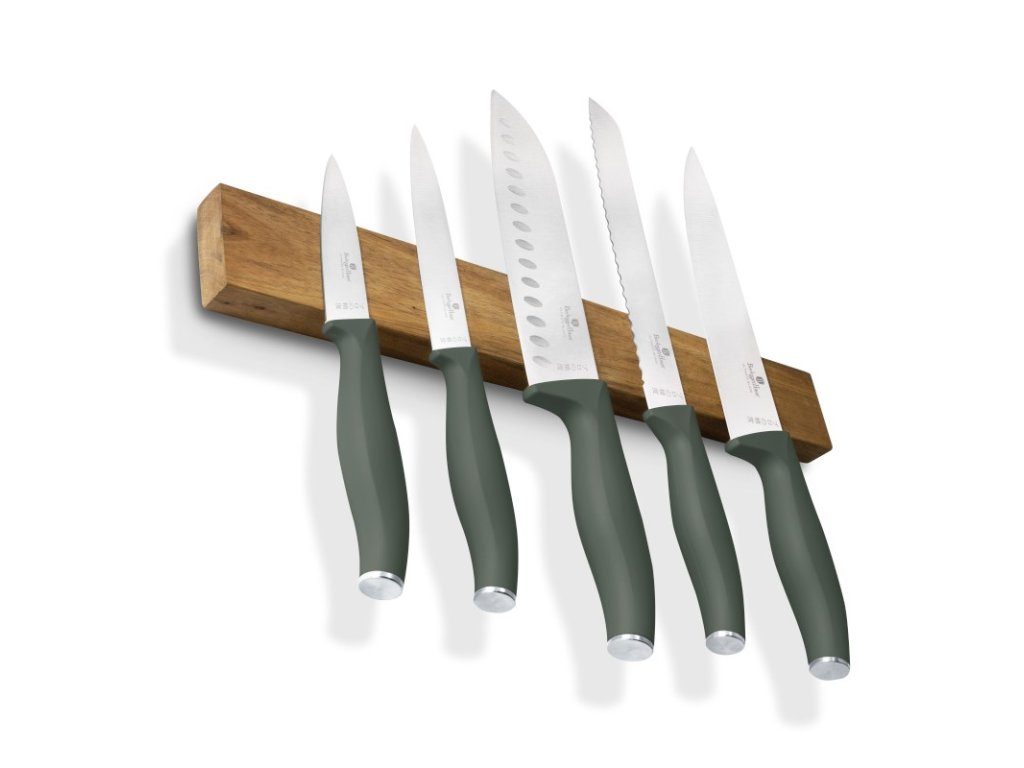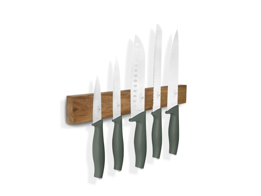 BERLINGERHAUS Sada nožů s magnetickým držákem z akátového dřeva 6 ks Matte Green Collection BH-2978