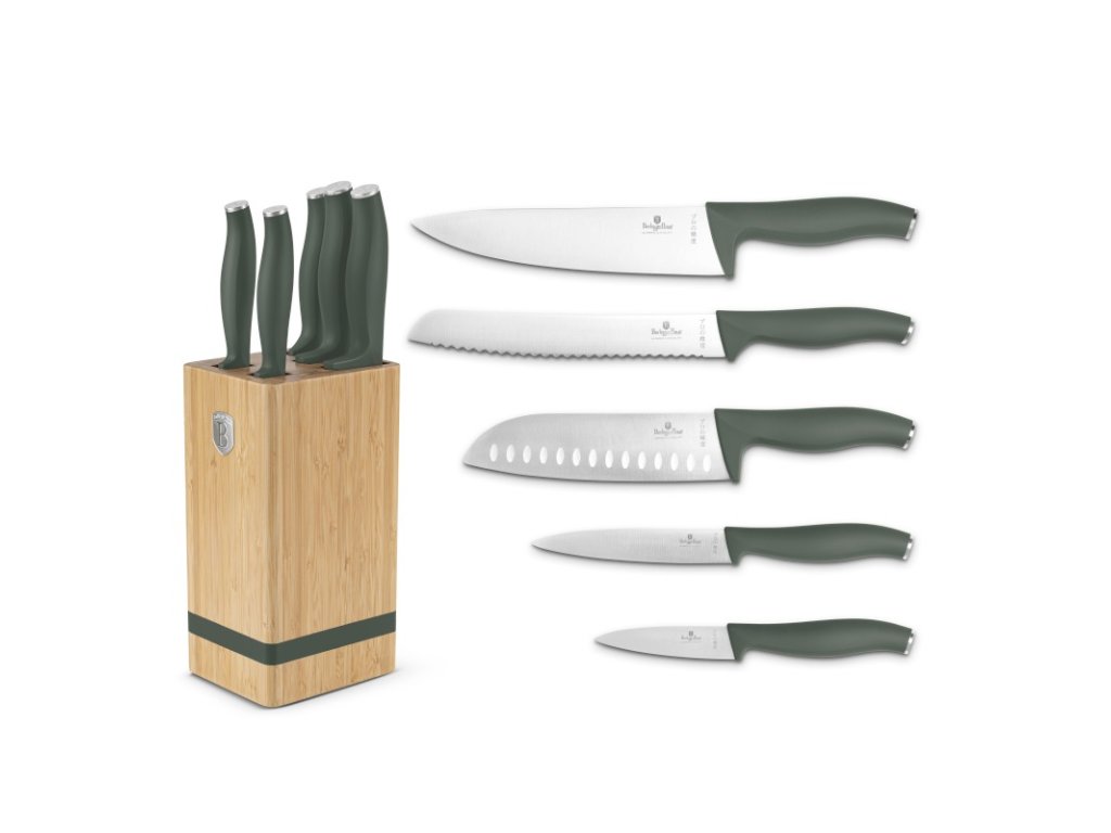 BERLINGERHAUS Sada nožů se stojanem BAMBOO 6 ks Matte Green Collection BH-2751