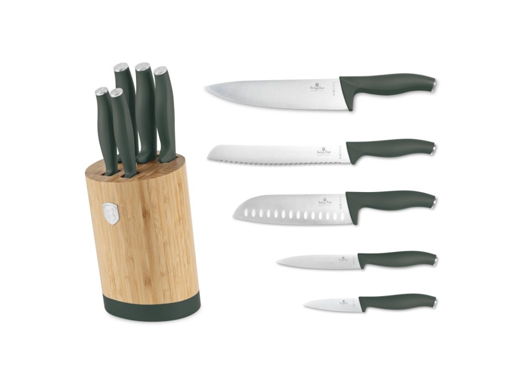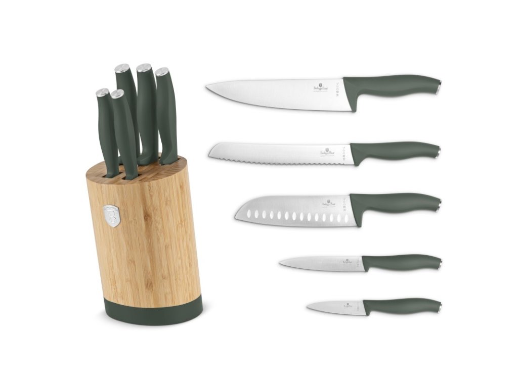 BERLINGERHAUS Sada nožů se stojanem BAMBOO 6 ks Matte Green Collection BH-2757