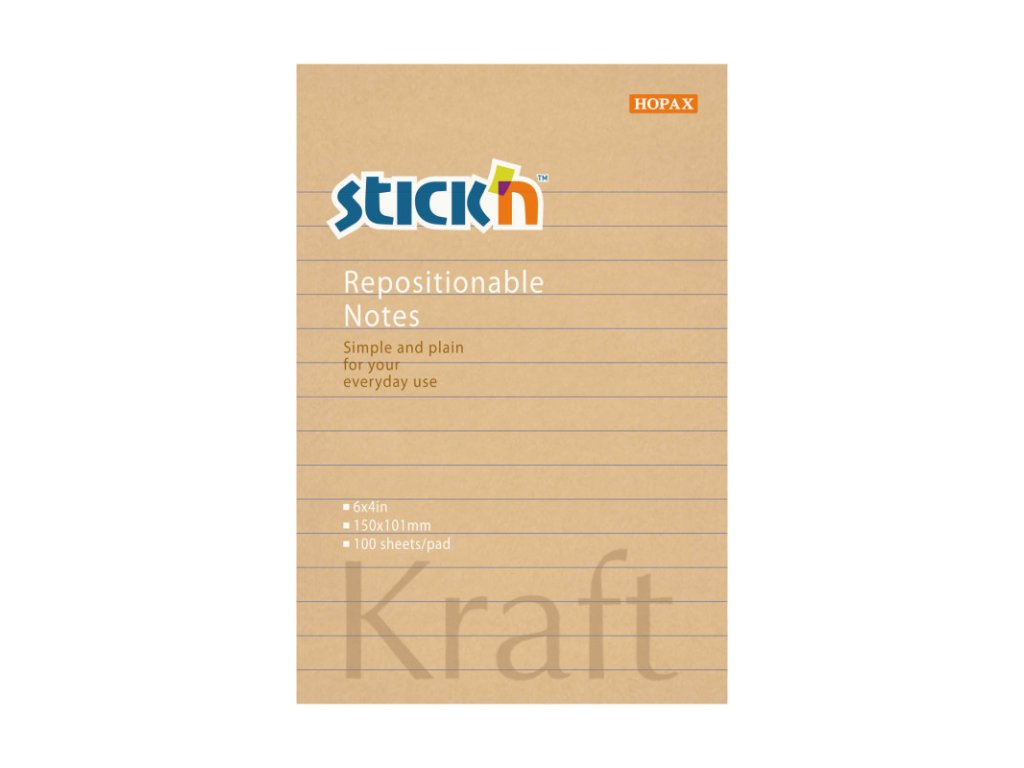 Samolepicí bločky Stick´n by Hopax - 101 mm x 150 mm / linka / 100 lístků / kraft