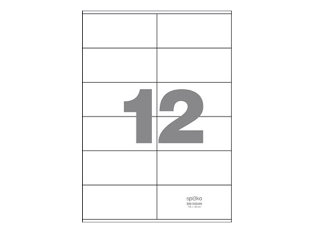 Univerzální kancelářské papírové samolepicí etikety, vhodné pro inkoustové, laserové tiskárny a kopírky. Etikety jsou vyrobeny násekem archu A4.- rozměr etikety: 105 × 48 mm