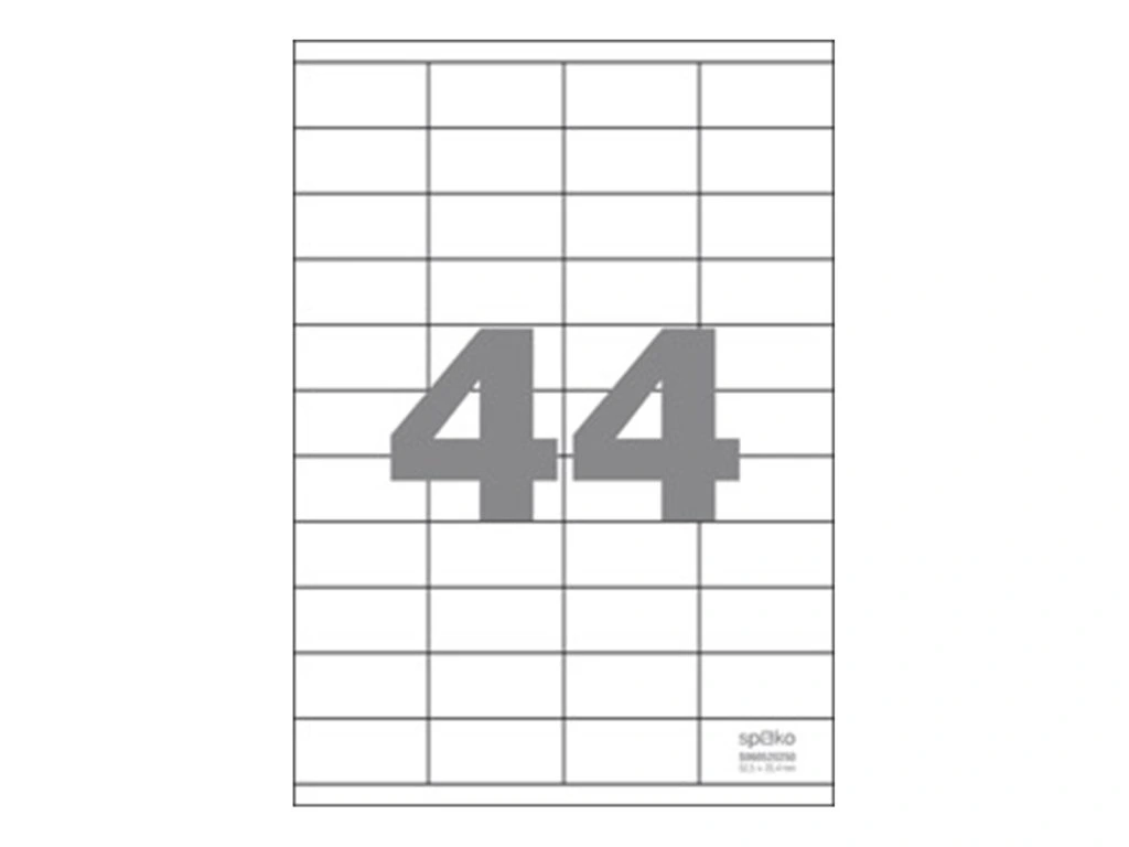 Univerzální kancelářské papírové samolepicí etikety, vhodné pro inkoustové, laserové tiskárny a kopírky. Etikety jsou vyrobeny násekem archu A4.- rozměr etikety: 52,5 × 25,4 mm