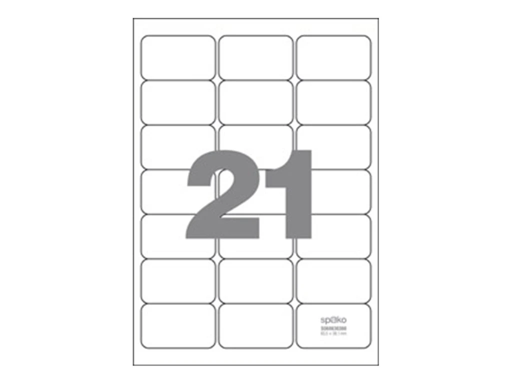 Univerzální kancelářské papírové samolepicí etikety, vhodné pro inkoustové, laserové tiskárny a kopírky. Etikety jsou vyrobeny násekem archu A4.- rozměr etikety: 63,5 × 38,1 mm